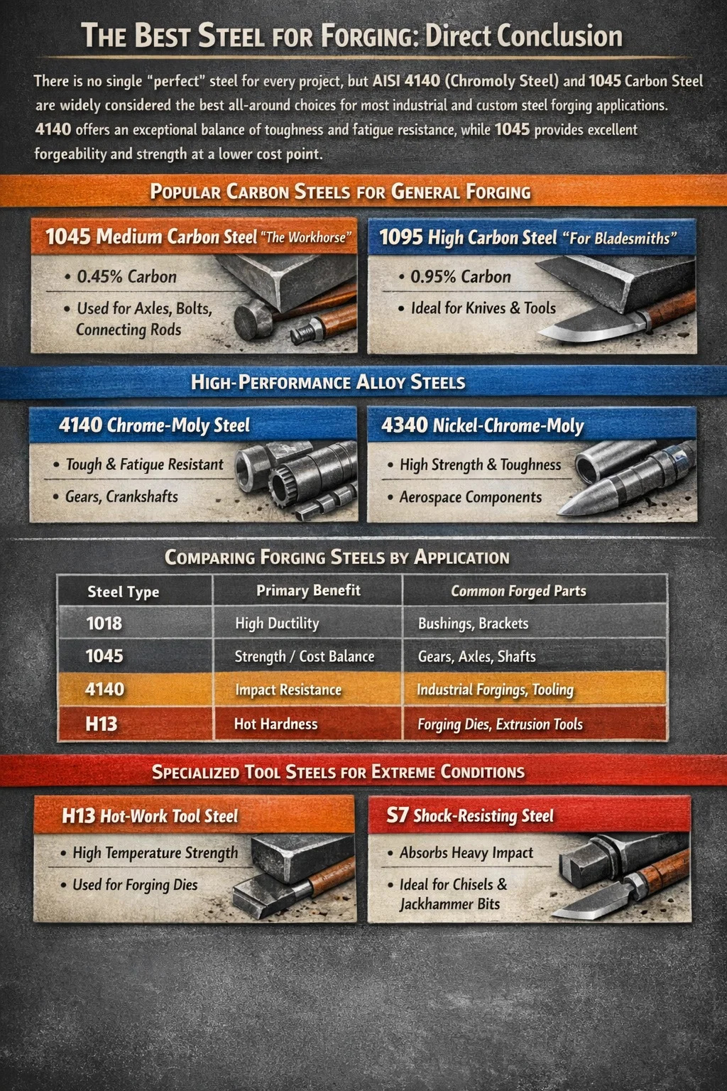 모든 프로젝트에 하나의 "완벽한" 강철은 없습니다. AISI 4140(크로몰리강) 및 1045 탄소강 대부분의 산업 및 맞춤형 분야에서 최고의 만능 선택으로 널리 간주됩니다. 강철 단조 응용 프로그램. 4140은 인성과 피로 저항의 탁월한 균형을 제공하는 반면, 1045는 저렴한 비용으로 뛰어난 단조성과 강도를 제공합니다.